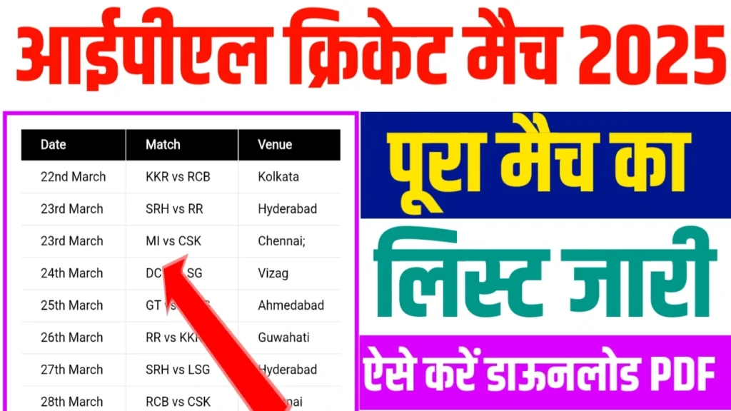 IPL Match List 2025 : आईपीएल 2025 में होनेवाली सभी टीम का मैच लिस्ट जारी ऐसे करें डायरेक्ट Pdf डाउनलोड … Continue reading IPL Match List 2025 : आईपीएल 2025 में होनेवाली सभी टीम का मैच लिस्ट जारी ऐसे करें डायरेक्ट Pdf डाउनलोड
