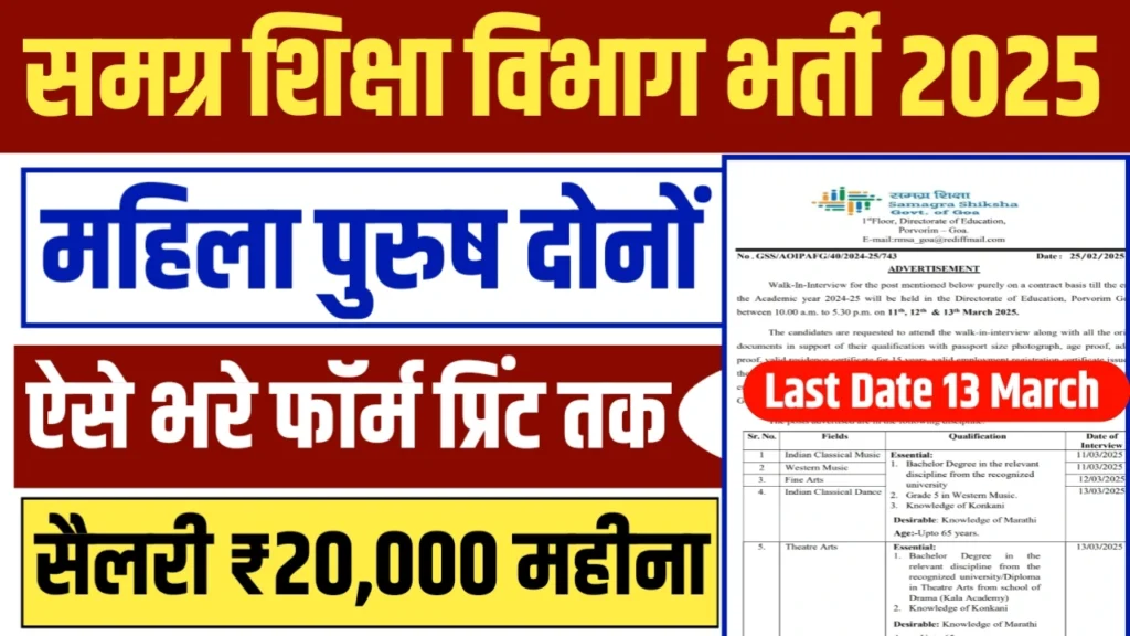 Samgra Shiksha Vibhag Vacancy : समग्र शिक्षा विभाग में महिला पुरुष दोनों कैंडिडेट की सीधी भर्ती शुरू ऐसे करें Direct … Continue reading Samgra Shiksha Vibhag Vacancy : समग्र शिक्षा विभाग में महिला पुरुष दोनों कैंडिडेट की सीधी भर्ती शुरू ऐसे करें Direct ऑनलाइन माध्यम से आवेदन